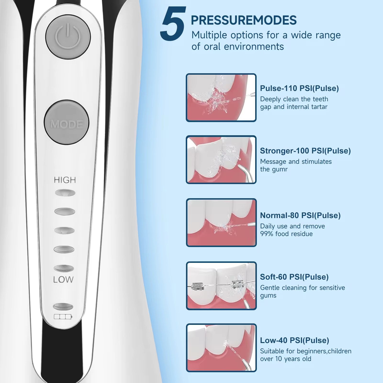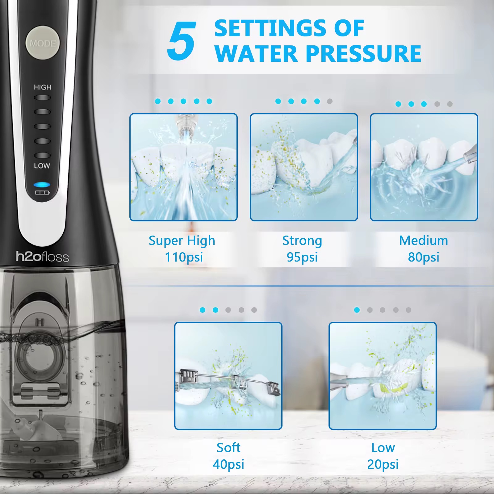 واترجت H2O Floss مدل HF-2 یکی از دستگاههای پیشرفته و پرکاربرد برای تمیز کردن عمقی دندانها و لثهها است. این دستگاه با استفاده از پالسهای آب با فشار بالا، به طور موثر به عمق دندانها و لثههای شما نفوذ کرده و پلاک، ذرات غذا و باکتریهایی که مسواک به تنهایی قادر به حذف آنها نیست را از بین میبرد. با واترفلاسر HF-2 به راحتی میتوانید به فواصل بین دندانی و زیر خط لثه، اطراف بریجها، ایمپلنتها و براکتهای ارتودنسی دسترسی پیدا کنید و آنها را به طور کامل تمیز کنید، و با پیشگیری از بیماریهای لثهای، لثههای سالمتری داشته باشید. همچنین استفاده منظم از واترفلاسر به کاهش التهاب و خونریزی لثه کمک میکند و سلامت لثهها را بهبود میبخشد. طراحی جمع و جور و سبک این دستگاه و داشتن کیف همراه، آن را برای استفاده در خانه و مسافرت مناسب میسازد. همچنین باتری فوق پیشرفتهاش این امکان را به شما میدهد که با هر بار شارژ کامل تا مدت طولانی از آن استفاده نمایید. این دستگاه با داشتن استاندارد ضد آب IPX7، امکان استفاده ایمن در حمام و شستشو با آب را فراهم میکند. به علاوه مخزن ۳۰۰ میلیلیتری آن امکان استفاده طولانی مدت بدون نیاز به پر کردن مکرر را فراهم میکند. این دستگاه با ۶ عدد سری مختلف با قابلیت چرخش ۳۶۰ درجه شامل یک سری زبانشور، ۲ سری استاندارد، یک سری ارتودنسی، یک سری پریودنتال و یک سری مسواک ارائه میشود. واترفلاسر HP-2 دارای پنج حالت تمیزکنندگی میباشد که تمامی نیازهای مصرفکننده برای شستشوی کامل دهان و دندان را برطرف مینمایید. اگر به دنبال یک دستگاه حرفهای و با کیفیت برای بهبود بهداشت دهان و دندان خود هستید، خرید واترفلاسر HF-2 بهترین انتخاب برای شماست. این دستگاه با ویژگیهای متنوع و عملکرد قوی خود، نه تنها به حفظ سلامت دندانها و لثهها کمک میکند، بلکه تجربهای راحت و دلپذیر از نظافت دهان و دندان را برای شما به ارمغان میآورد.